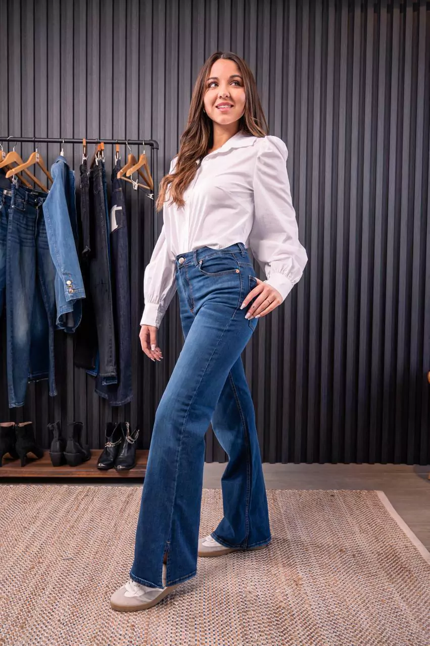 Denim Eleni Bootcut Tajo. Lavado Azul Tal Ombligo, Super Comodo. Lona Intermedia, Semioxf, Un corte unico de Saltan. Ideal para lucir en cualquier ocasión. Se recomienda lavar y secar del revés. Todos nuestros jeans son confeccionados por Saltan Pepa.