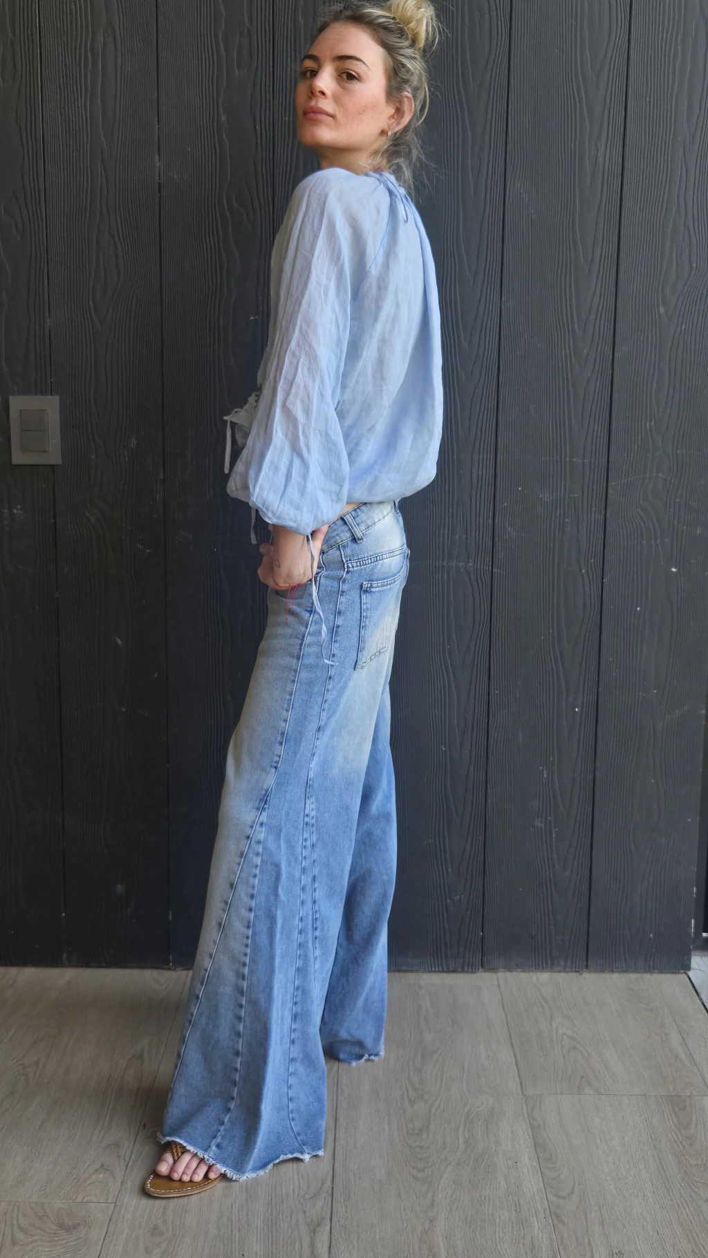 DENIM WEEKEND CLARO WIDE LEG RECORTES es la definición de sofisticación y estilo contemporáneo en un solo jean. Confeccionado en un tejido rígido fino y claro, este pantalón wide leg destaca por sus exclusivos recortes, que aportan un detalle único y moderno a tu look.